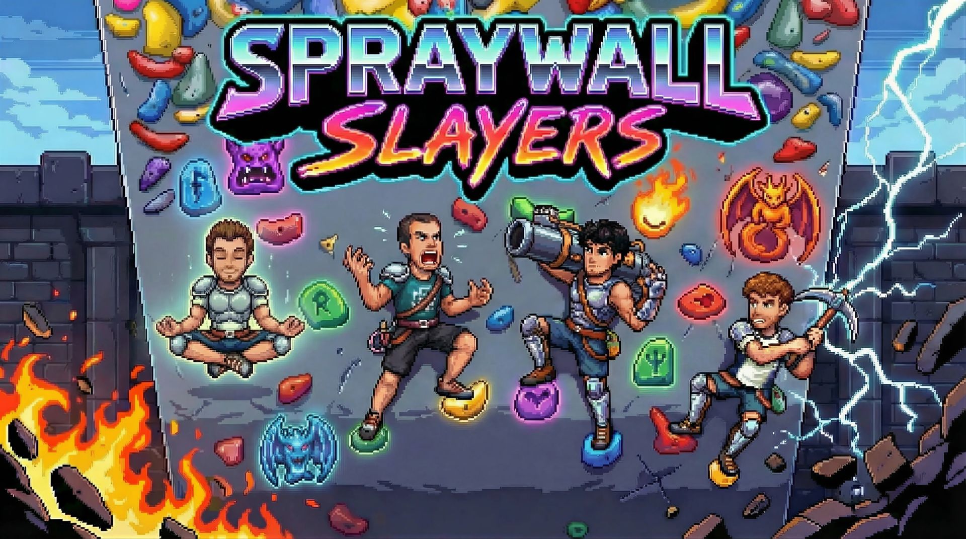 V dnešní době je spousta lezeckých videí na YouTube dost podobných. Proto jsme se snažili vymyslet něco, co bude opravdu jiné. A tak jsme přišli se Spraywall Slayers! Jedinečná kombinace populárních videí z lezení na stěně a oldschoolového herního designu, který nikdy nezestárne.